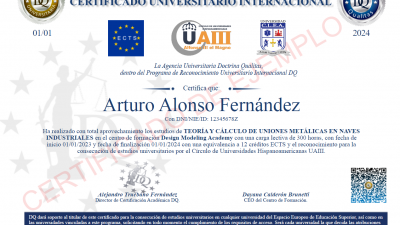 - Certificación Universitario Internacional DQ Aval en Europa para Equivalencias (acceso a servicios de Bolsa de Trabajo, Visas y Continuar Estudios en España).